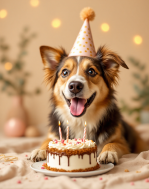 - 가랜드 및 배너: ‘HAPPY BIRTHDAY’ 문구가 적힌 가랜드나 우리 강아지 사진으로 만든 배너는 특별한 기념 분위기를 더해줍니다.