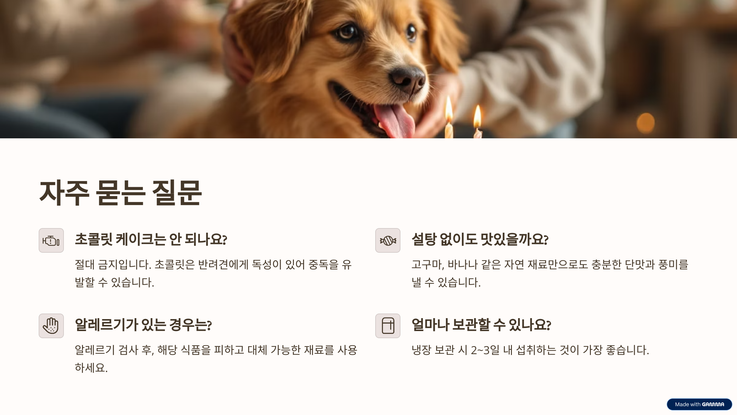 Q4: 반려견용 케이크는 얼마나 보관할 수 있나요?
