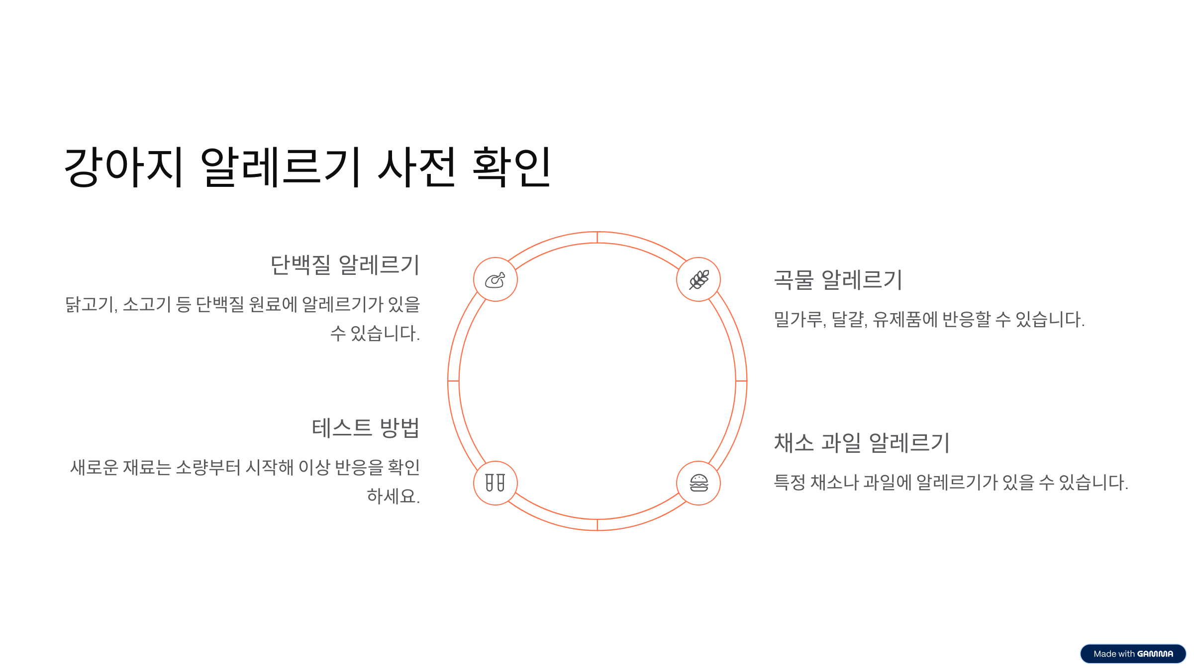 수제 케이크를 만들기 전, 강아지가 알레르기를 가지고 있는 식재료가 있는지 반드시 확인해야 합니다. 흔히 알레르기를 유발하는 재료는 다음과 같습니다.